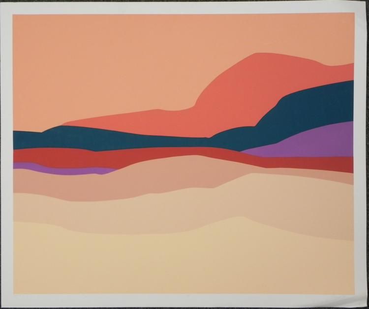 This landscape features layers of colors receding into the rocky distance. Artist: Doug Danz Signature: In pencil, lower right Title: Strata B Edition: Artist's Proof, marked A/P Medium: Lithograph on paperSheet size: 25 x 30 inches Condition: Excellent, with lower right corner creasing