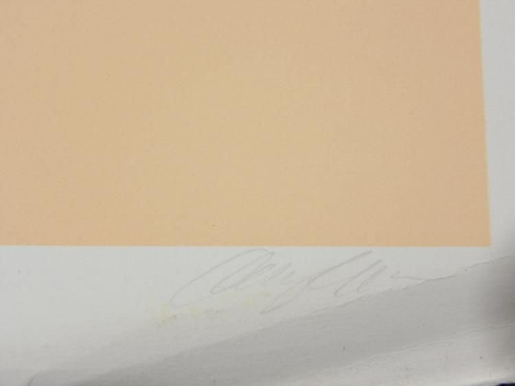 This landscape features layers of colors receding into the rocky distance. Artist: Doug Danz Signature: In pencil, lower right Title: Strata B Edition: Artist's Proof, marked A/P Medium: Lithograph on paperSheet size: 25 x 30 inches Condition: Excellent, with lower right corner creasing