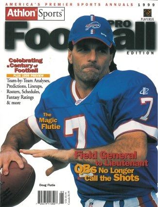 This is an Athlon Sports 1999 Pro Football Magazine with Buffalo Bills Quarterback Doug Flutie on the cover. This Preview has team analysis, predictions, lineups, rosters, schedules, fantasy ratings and more for the 1999 Season