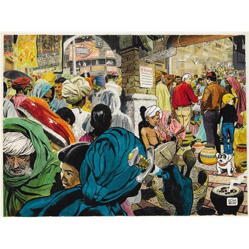 <B>Doug Wildey - Jonny Quest Classics #2 Cover Original Art (Comico, 1987).</B></I> Doug Wildey, celebrated creator of "Jonny Quest," was one of the best illustrators ever to work in action-adventure comics. This suspense-filled thriller was adapted from his own TV story, "The Calcutta Adventure," in which Hadji first joined the Quest team. The image area of this mixed-media, wrap-around cover measures 24" x 18", and the art is in Excellent condition. Also included in this lot is a hand-written note from Doug Wildey.<BR><BR><b>Shipping:</b> Framed - with Glass, Large (<a target="_blank" href="http://www.heritageauctions.com/common/shipping.php">view shipping information</a>)