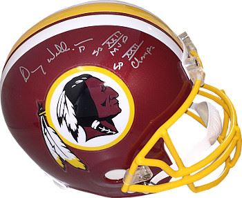 Doug Williams returned to the NFL, joining the Washington Redskins at the behest of Redskins coach Joe Gibbs. He led the team to Super Bowl XXII in which they routed the Denver Broncos, becoming the first black quarterback to play in a Super Bowl, and as of Super Bowl XLIII, the only black quarterback to win one. Williams completed 18 of 29 passes for 340 yards, with four touchdown passes, and was named Super Bowl MVP. Doug has hand signed this Washington Redskins Riddell Mini helmet with dual SB XXII MVP & SB XXII Champs. MAB Hologram and Certificate of Authenticity from Athlon Sports.