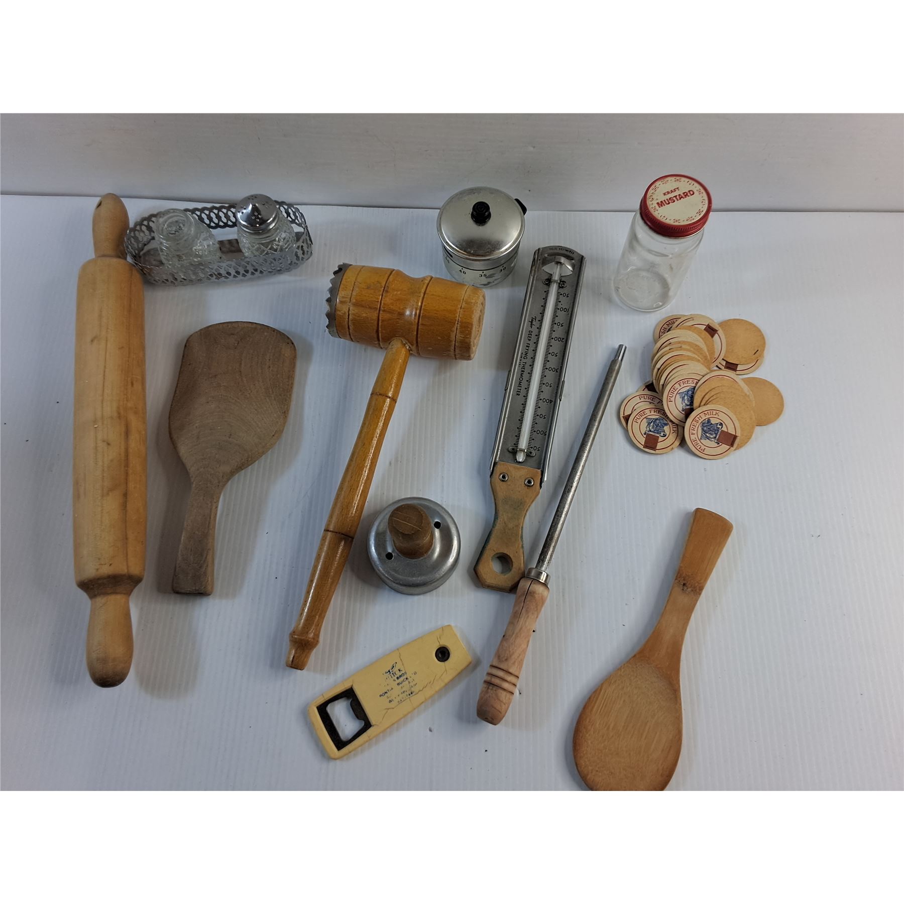 Dough Roller, Salt & Pepper Shakers, Deep Frying Thermometer, Sharpening Rod and Misc