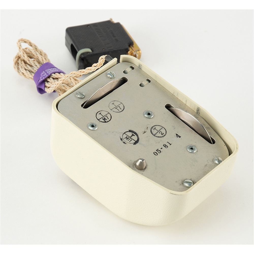 Rare pair of early input devicesa mouse and a coding keysetcreated by computer pioneer Douglas Engelbart, like those used in his iconic 1968 'Mother of All Demos.' The rare, early three-button computer mouse designed by Engelbart, measuring approximately 4 x 2.75 x 2.5, utilizes two metal discs (corresponding to the X-axis and Y-axis) on the bottom to locate the position of the cursor, rather than a ball or optical light that came to be used later. The coding keyset, measuring 5 x 1.25 x 1.5, features five keys (permitting 31 key-press combinations), for typing and entering commands. Both devices are complete with their cords, which terminate in serial connectors.