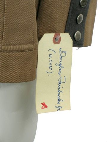 A great mint condition historical costume. This is a hero, screen used military jacket worn by legendary Douglas Fairbanks, Jr. as Lieutenant Fred "Dig" Digby, in the classic WWI action love-triangle feature "Captured!". This great actor became as famous as his mother and father working in over 100 films and TV shows, spanning from the early 20th Century, right into the 21st Century! The jacket is complete with brass buttons, epaulets, sleeve buttons with brass numbered label rankings. It includes the original United Costumers of Hollywood label with "Job 232 C - Doug. Fairbanks Jr." written in. The beautifully kept jacket comes with a Certificate of Authenticity from Warner Brothers Studios.