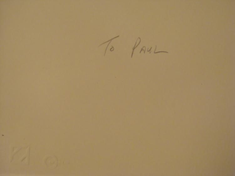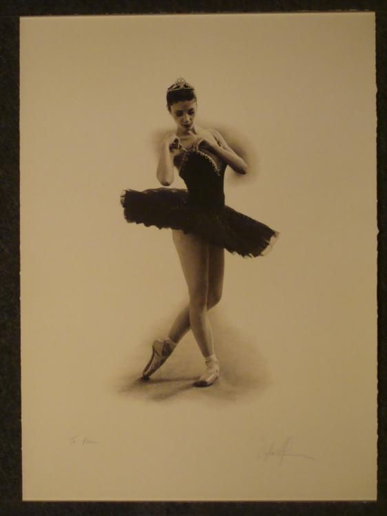 This ballerina has beauty and grace, even as she mends a strap on her outfit. Artist: Douglas HoffmanSignature: In pencil, lower rightDedication: "To Paul", in pencil, lower leftMedium: Print on paper Size: 20 1/2 x 28 1/4 inchesPublisher: Circle Gallery (blind stamp, lower left)Date: 1992 (marked on back)Condition: ExcellentBiography: Douglas Hofman (1945 - ) studied at the Maryland Institute College of Art. His art quickly became known for its softly lighted forms, and glowing details. Some techniques of the old masters shine through, combined with his own unique style. Hoffman has shown his work at many prestigious galleries and museums in every major city in USA and Japan.
