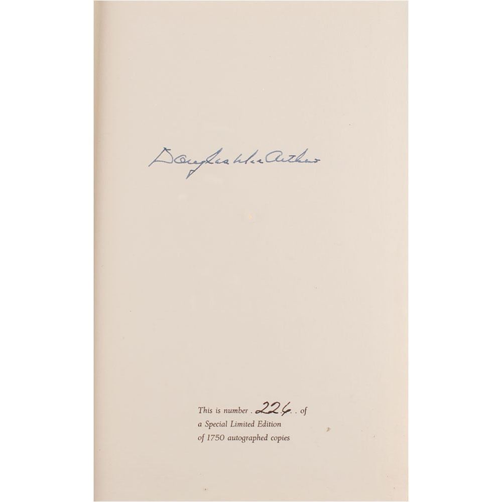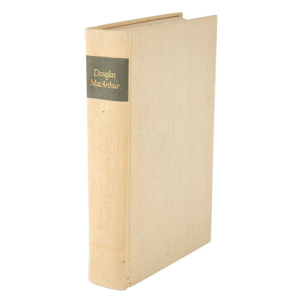 Signed book: Reminiscences. Special limited edition, numbered 226/1750. NY: McGraw-Hill Book Company, 1964. Clothbound hardcover with slipcase, 6.5 x 9.5, 438 pages. Neatly signed on the colophon in fountain pen by Douglas MacArthur. Autographic condition: fine. Book condition: VG+/None in a VG- slipcase, with a cracked top panel and some dampstaining to the case.