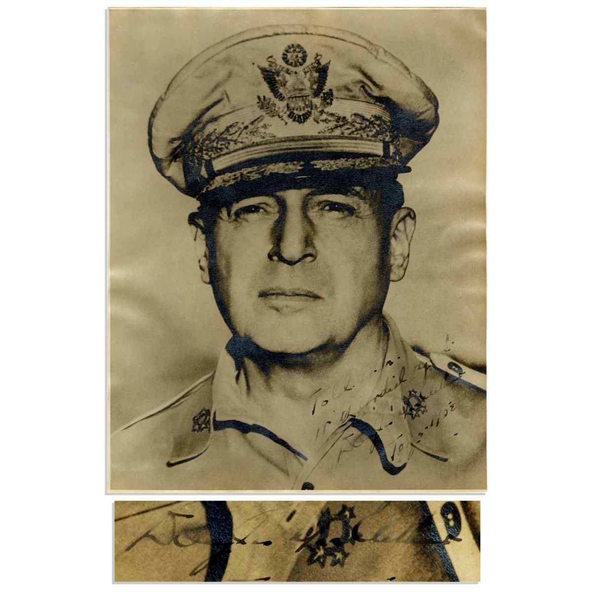 Five Star General Douglas MacArthur Signed 7.5'' x 9.5'' Semi-Matte Photo -- ''Douglas MacArthur / Tokyo 1950'' -- Very Good