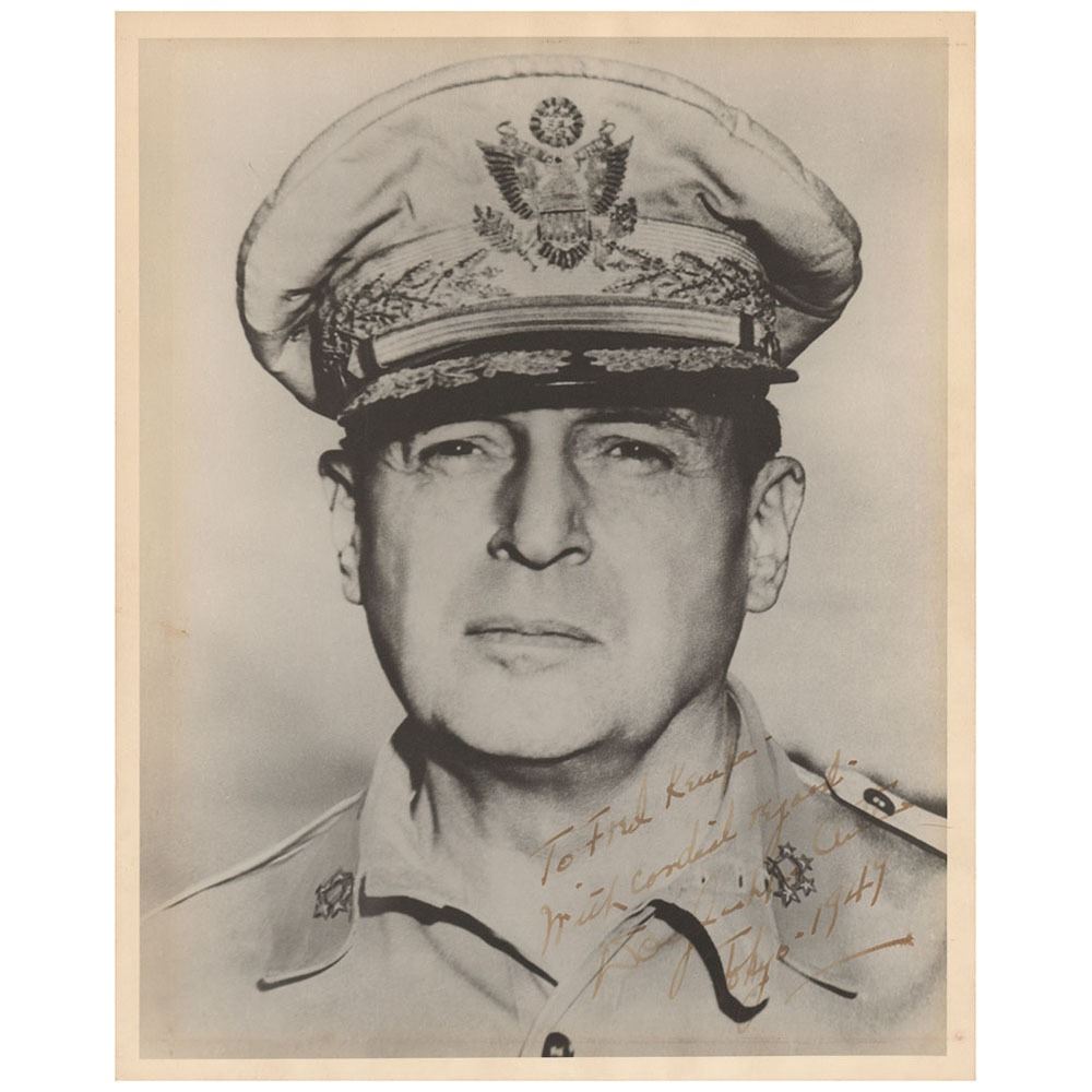 Vintage matte-finish 7.75 x 9.75 close-up photo of MacArthur in uniform, signed and inscribed in fountain pen, "To Fred Kemp, With cordial regard, Douglas MacArthur, Tokyo 1949.†In very good to fine condition, with toning and rippling to the edges. After WWII, MacArthur's headquarters were located in Tokyo, where he helped Japan to rebuild itself following the devastation of war. Overseeing this redevelopment, MacArthur was effectively the interim leader of Japan from 1945 to 1948; after handing over power to the Japanese government in 1948, MacArthur remained in Japan until relieved by President Harry S. Truman in 1951.