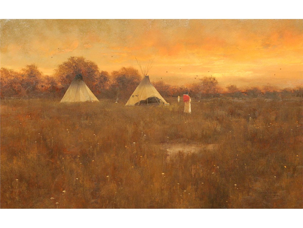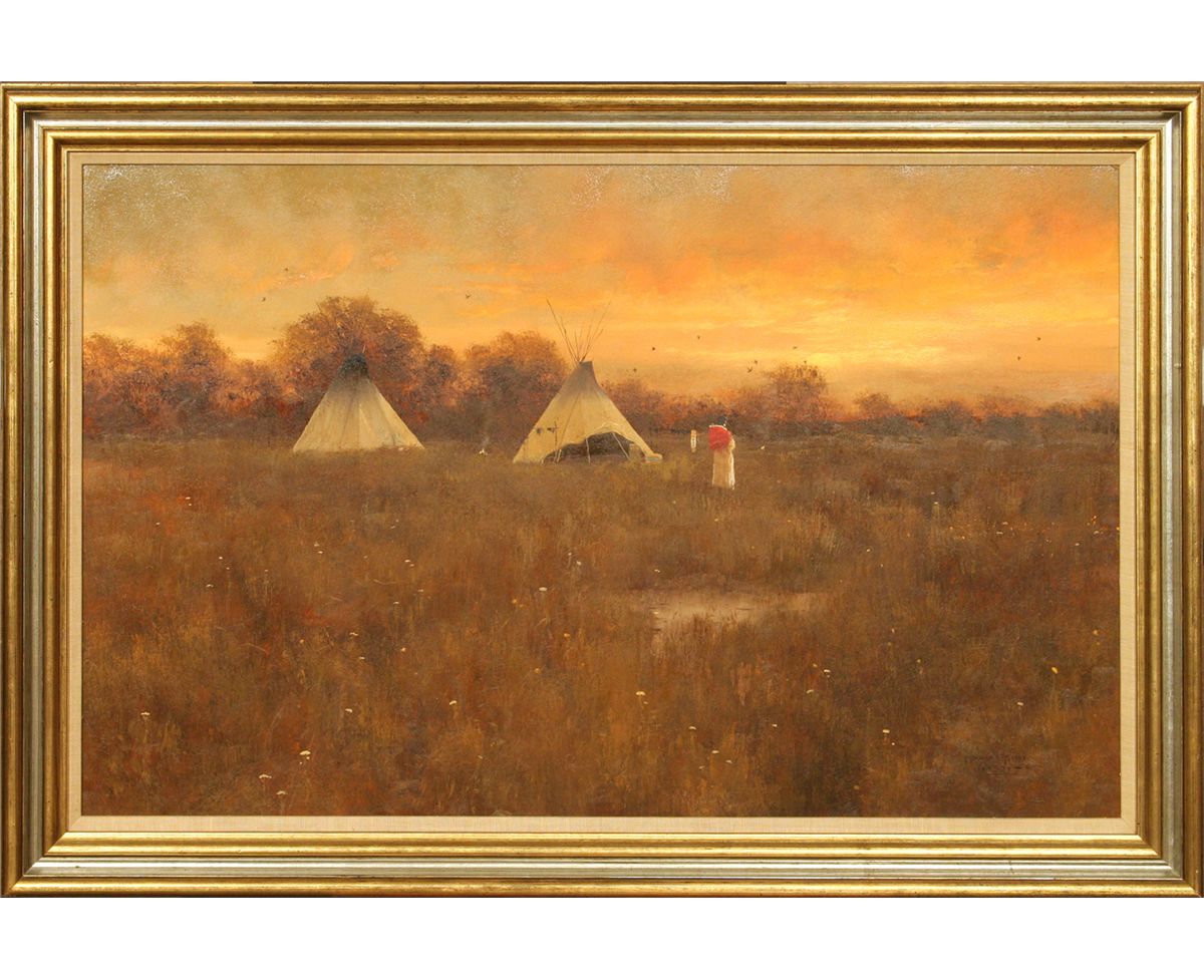 Douglas Ricks (1954 - 2003). Summer Evening at Sundown. 24" x 36" oil on board. Signed lower right: DOUGLAS RICKS 19 © 78.
