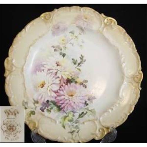 <p> Hand Painted with Pink and whit chrysanthemums. gilt edged.