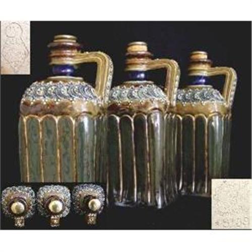Doulton Lambeth Three Stoneware Decanters