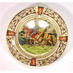 Doulton Seriesware plates, hand coloured and transfer printed with medieval knights, marks to base, 28cm diameter