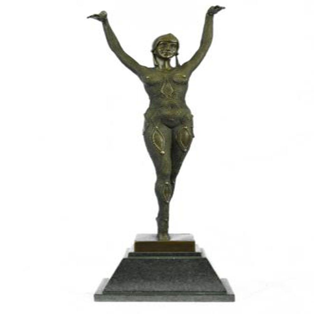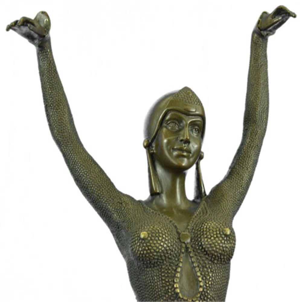 Solid Bronze reproduction with a heat applied patina and hot painted accents. A very stylish beautiful reproduction figure after D.H. This Sculpture was cast using the Lost Wax Method and mounted on a marble base. Dimensions: Height 26 X Width 8 inches. Weight: 20 LBS.