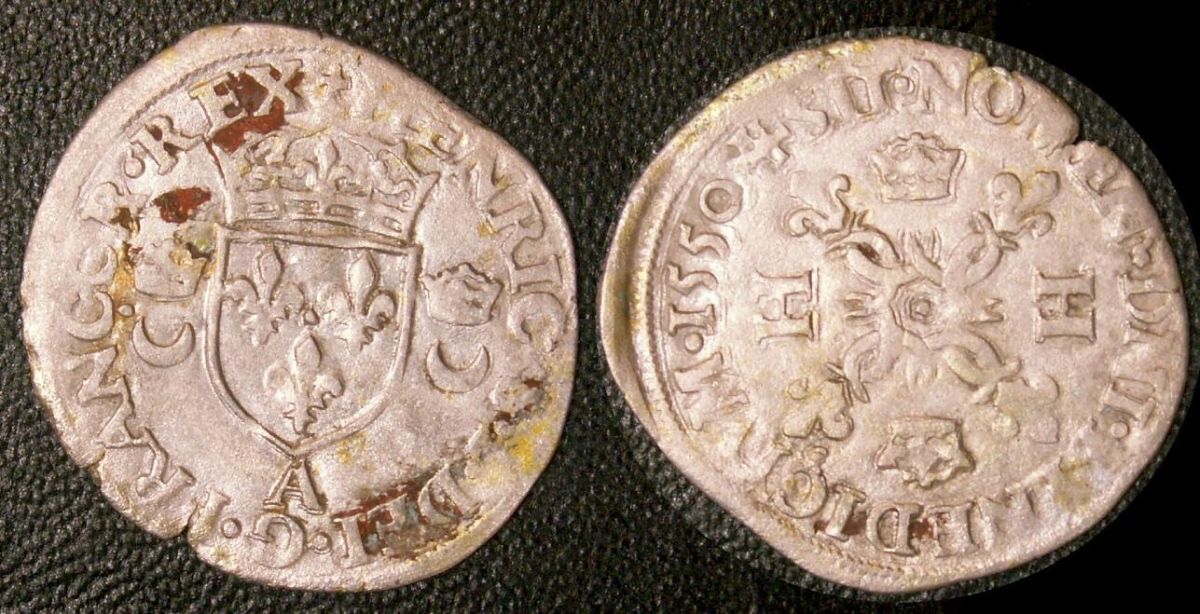 Douzain aux croissants 1550 F-VF, possibly cleaned.