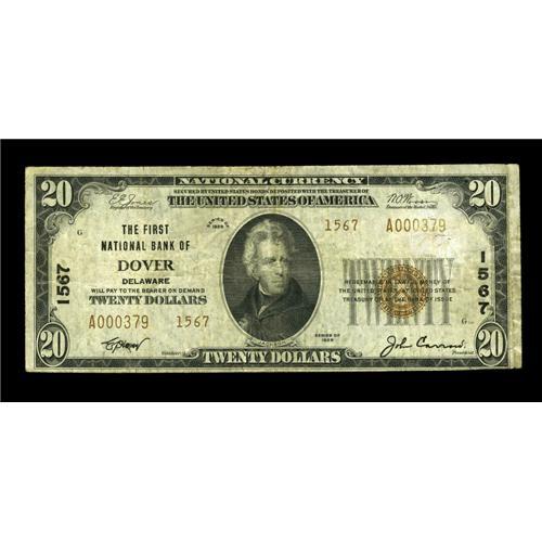 Dover, DE - $20 1929 Ty. 2 The First NB Ch. # 1567This
