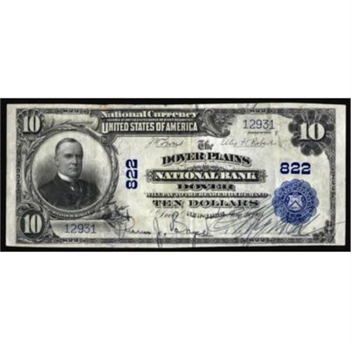 Dover, NY. $10 1902 Plain Back. Fr. 624. The Dover Plains NB. Charter #822. Very Fine+.