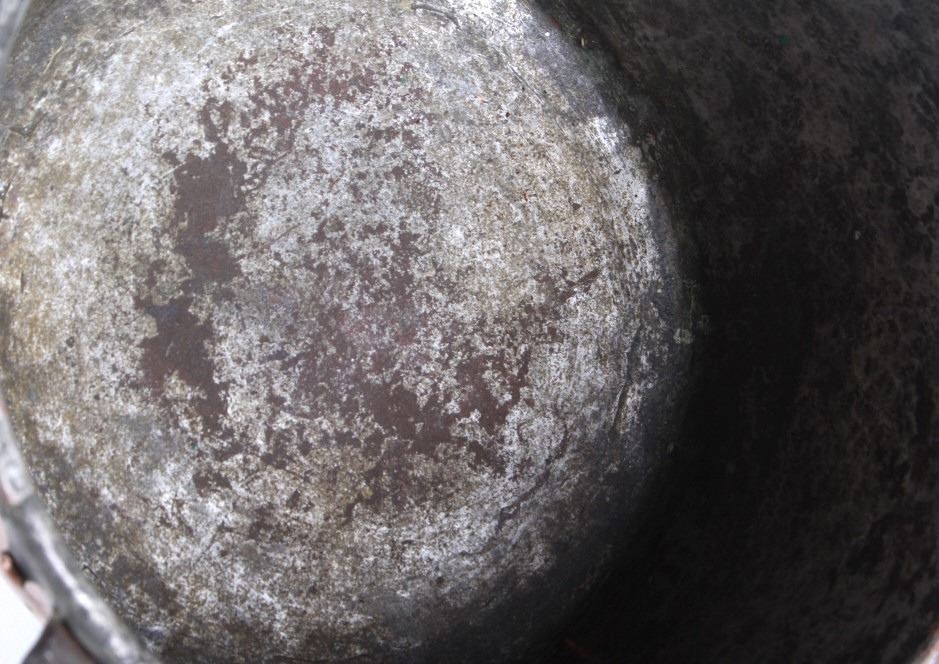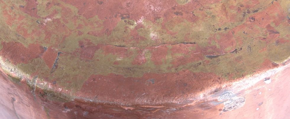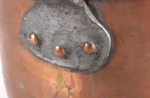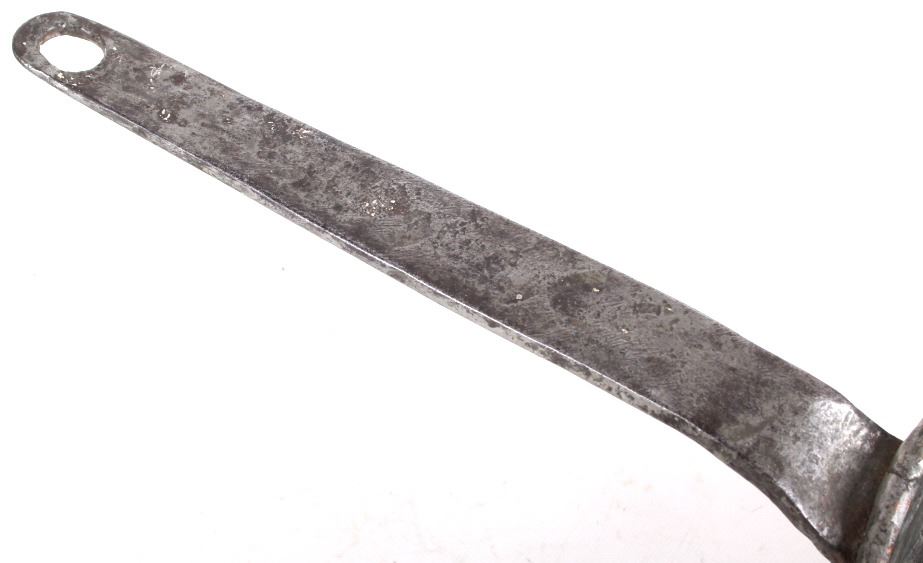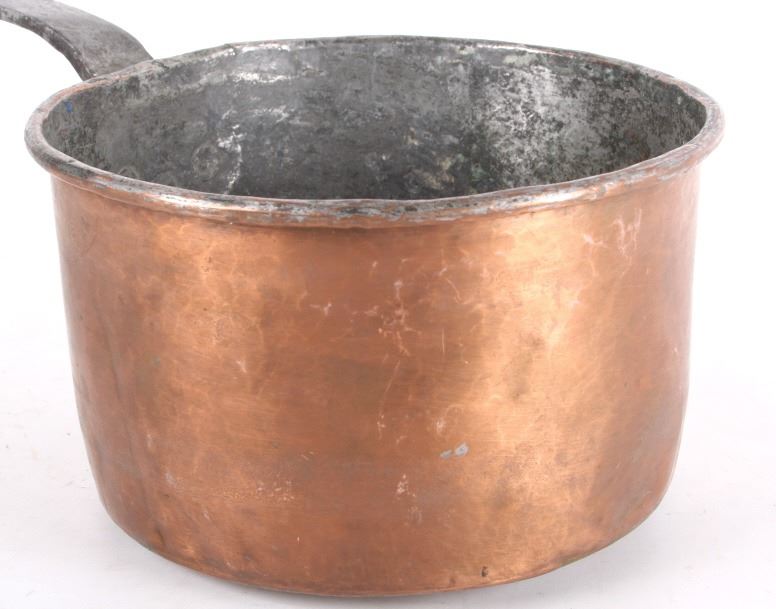 This lot features a dovetailed copper saucepan with forge iron handle from the 1860's. This handsome sauce pan shows years of wonderfully delicious use. The handle is hand forged and solidly riveted to the pan. The piece is in good condition for it age. It measures 17" L x 8 1/4" D x 4 5/8