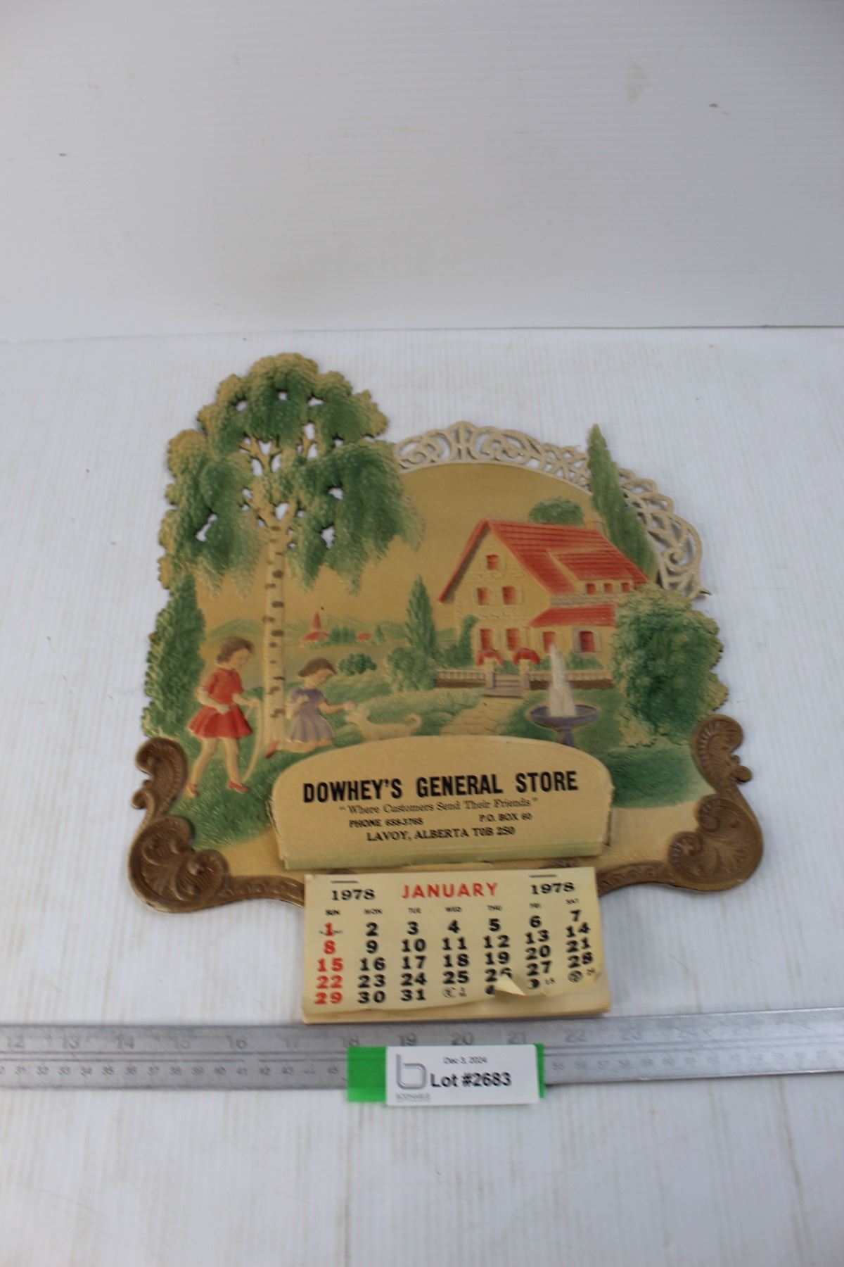 Dowheys General Store Calendar Lavoy Alberta 1978, Complete Months