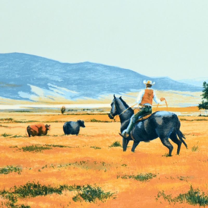 "Down From the High Country" is a limited edition serigraph on paper by William Nelson, numbered and hand signed by the artist! Measures approx. 28" x 21" (with border); 25" x 18" (image).