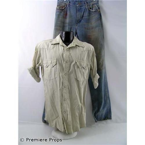 DOWN IN THE VALLEY - Sometimes it's hard to find your way Direct from the set of the dramatic western, this is Harlan's (Edward Norton) screenworn hero costume. This costume features a tan "Lucky Brand" slightly soiled button up shirt with small tears on the front and blue soiled with small blood stains "Wrangler" jeans. Make this hero costume part of your movie memorabilia collection today! (EDN1026)