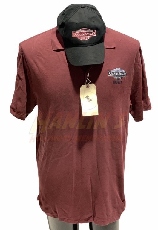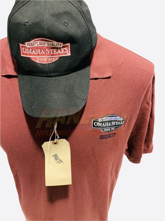 Consists of his hero Omaha Steaks polo shirt and hat.