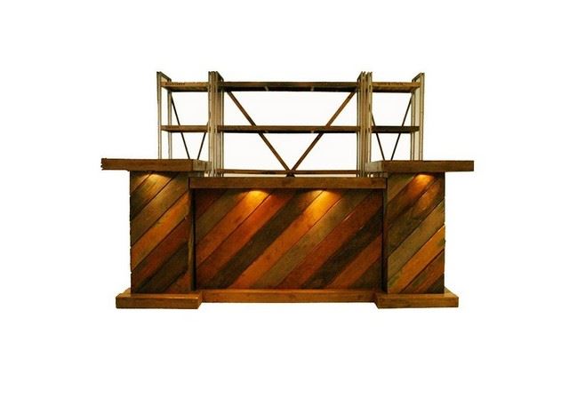 Downtown Bar Large - Arts District, Downtown, Industrial, Steam Punk, Urban. Comes With Down Lights and Interior Shelving. Dimensions: 3'W x 12'2'' D x 3'6'' H. Rental price associated with this item $650.00.