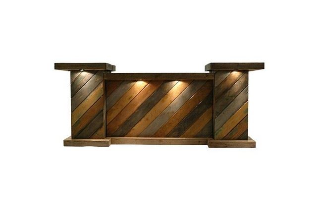 Downtown Bar - Small Arts District, Downtown, Industrial, Steam Punk. Comes With Down lights and Interior Shelving. Dimensions: 8'. Rental price associated with this item $632.50.