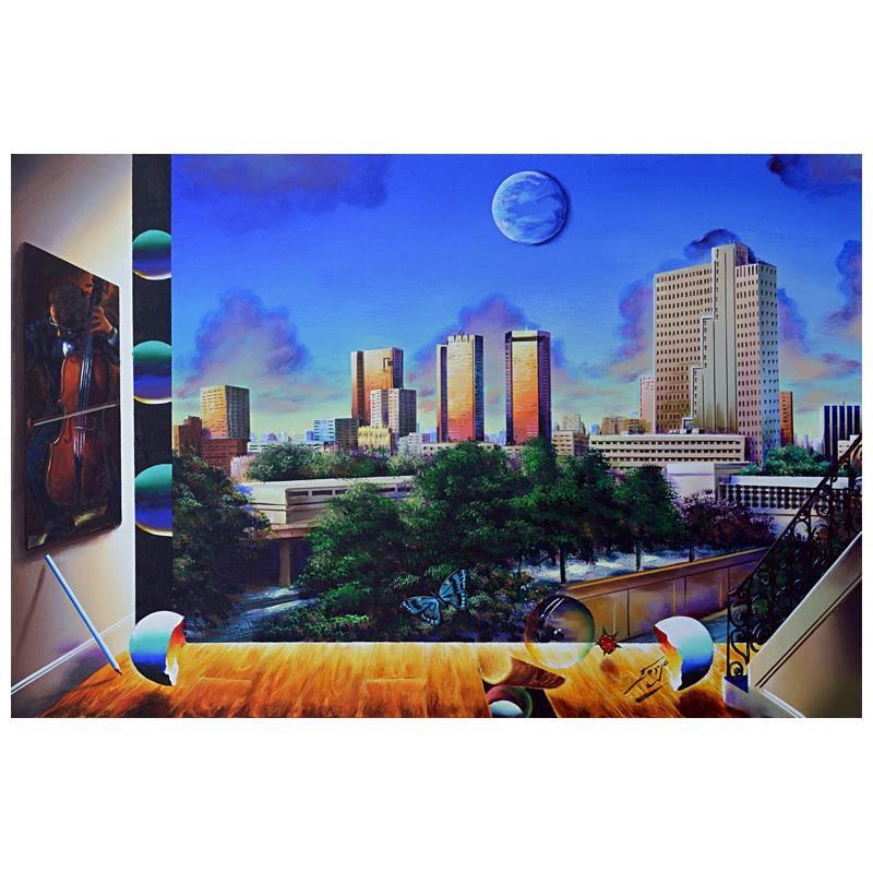 "Downtown Houston" is an original painting, oil on stretched canvas, by Ferjo. Hand signed by the artist, this piece comes with a letter of authenticity. Measures approx. 24" x 36" (image).