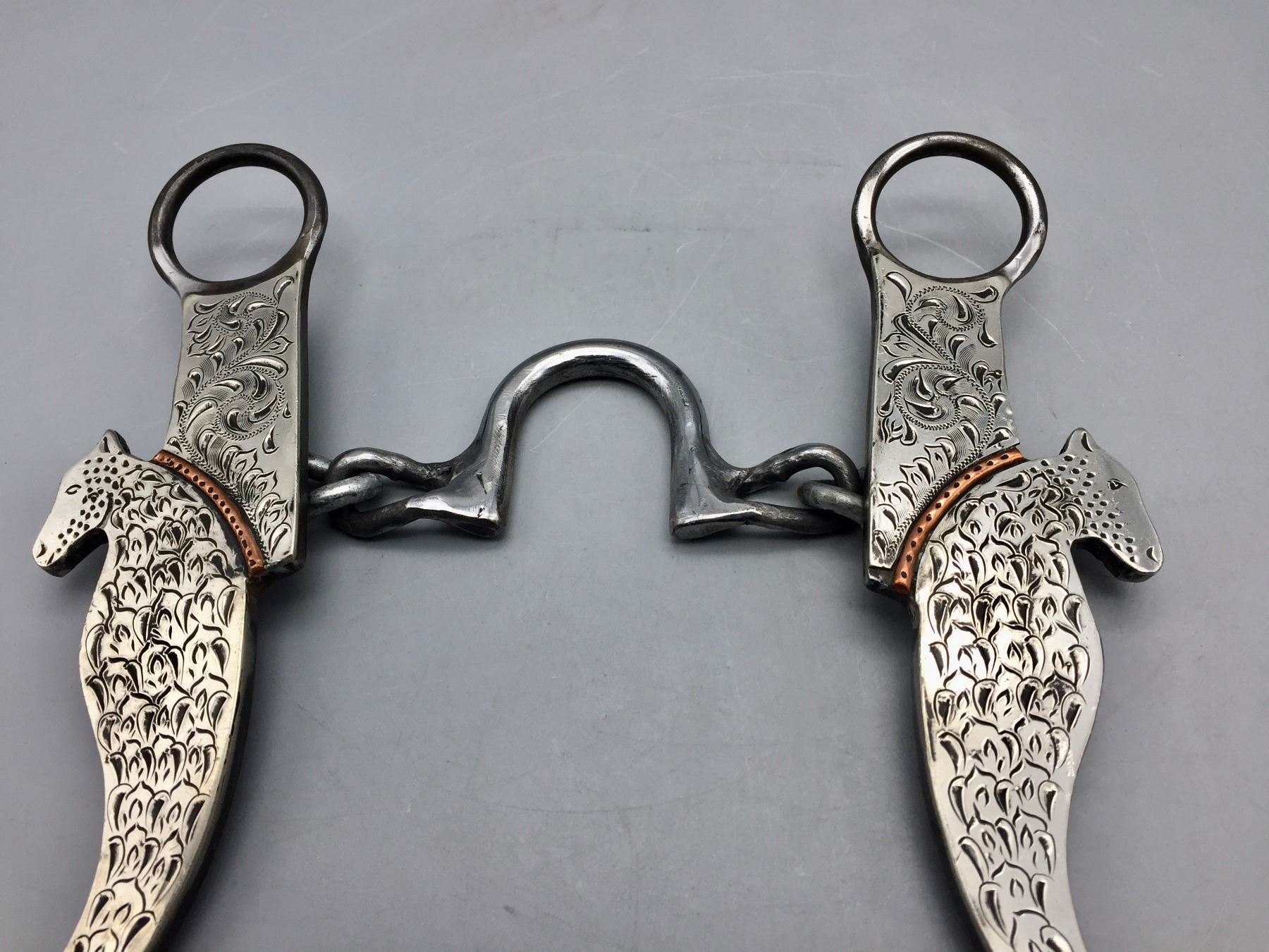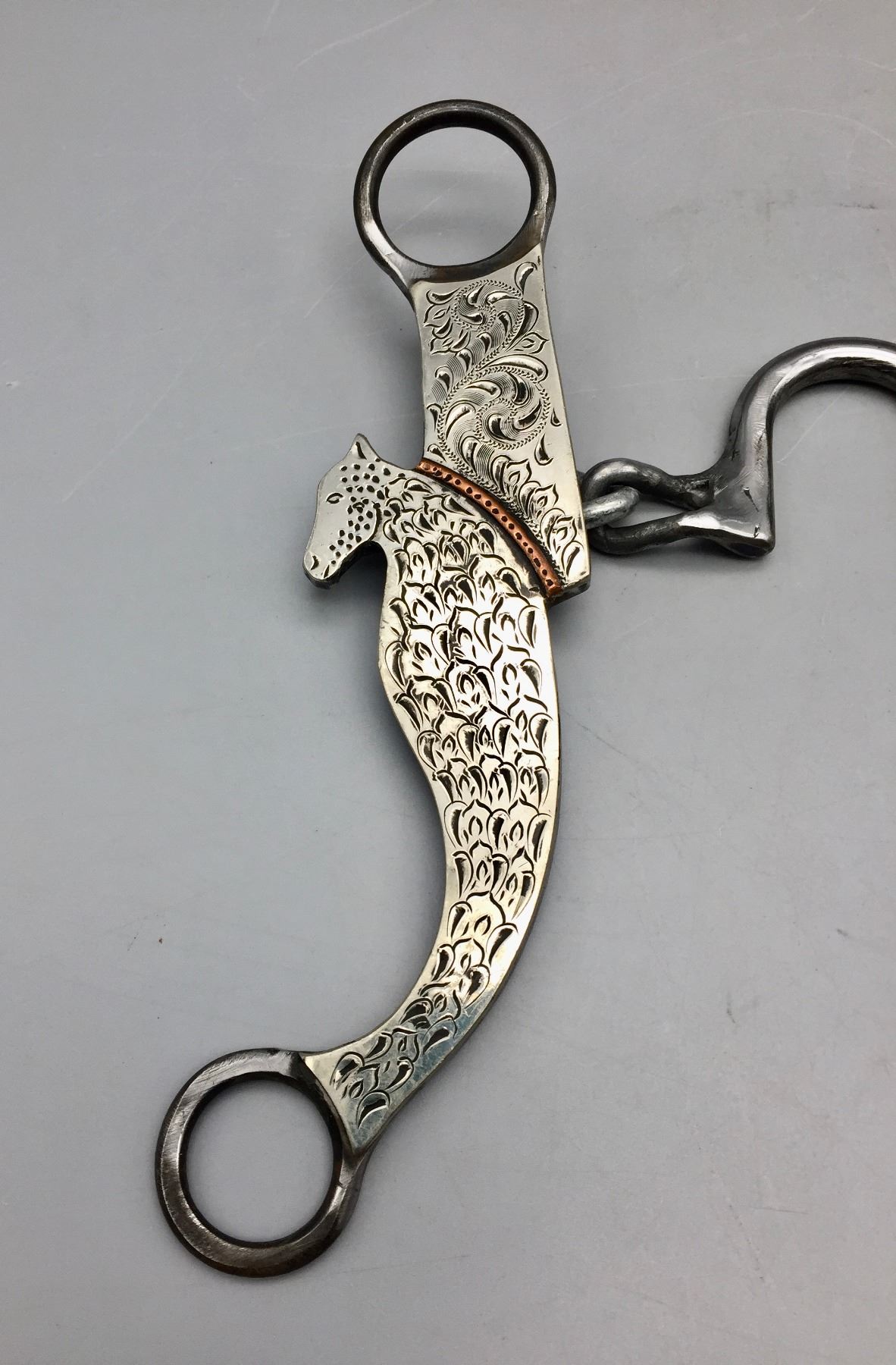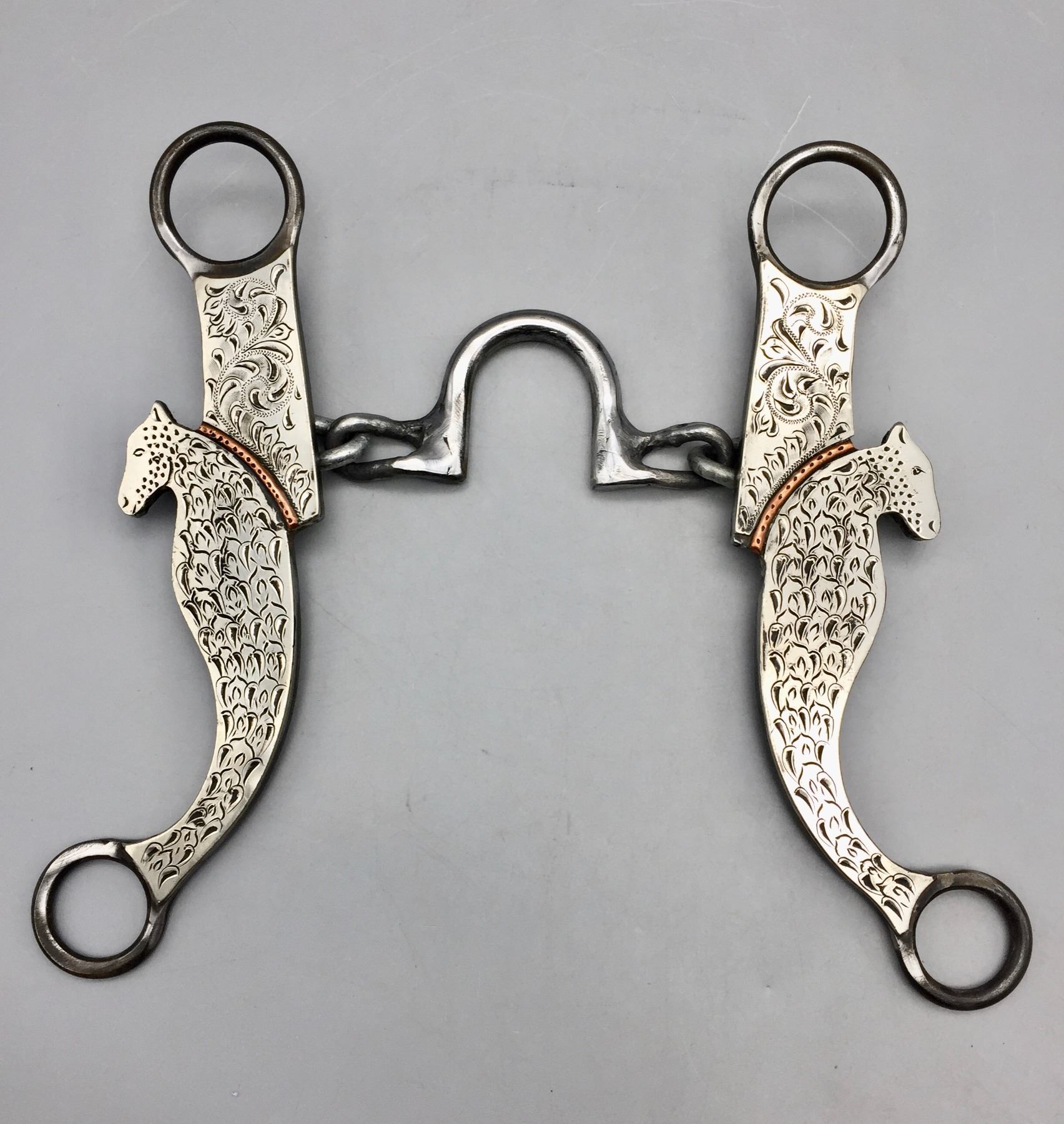 Description: Offered for sale in this lot is a handmade chain bit created by Doyle Stanfill. Maker: Doyle Stanfill. Approx. Age: Modern. Size: 4-1/2” mouth, 8” shank. Condition: Very good. Please look closely at the pictures - they are an important part of our description. Shipping: There will be a $5 handling / packaging fee for shipping this lot. The actual cost of postage will be added on top of that.