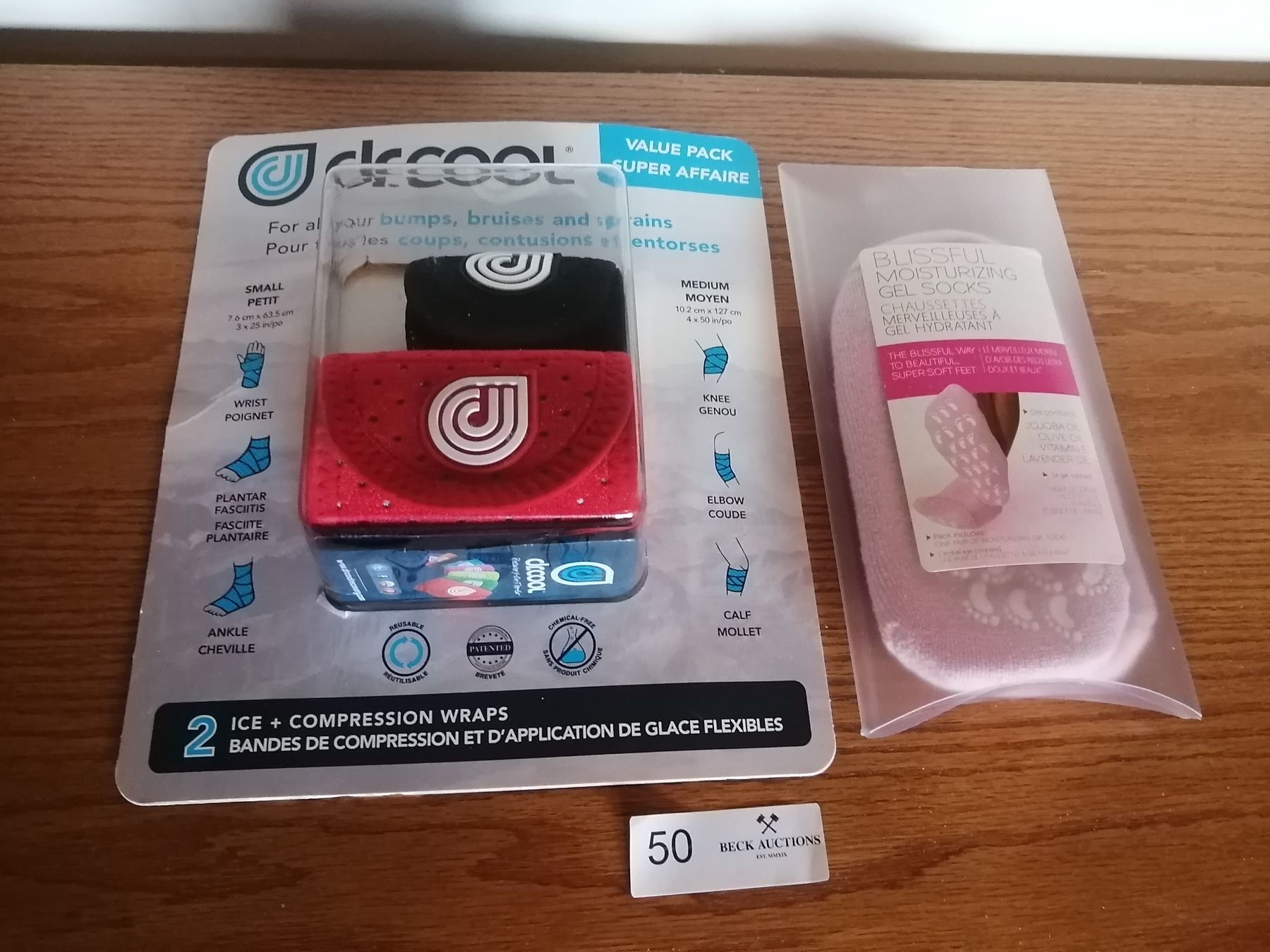 Dr. Cool 2 x Ice/Compression Wraps and a Pack of Blissful Moisturizing Gel Socks