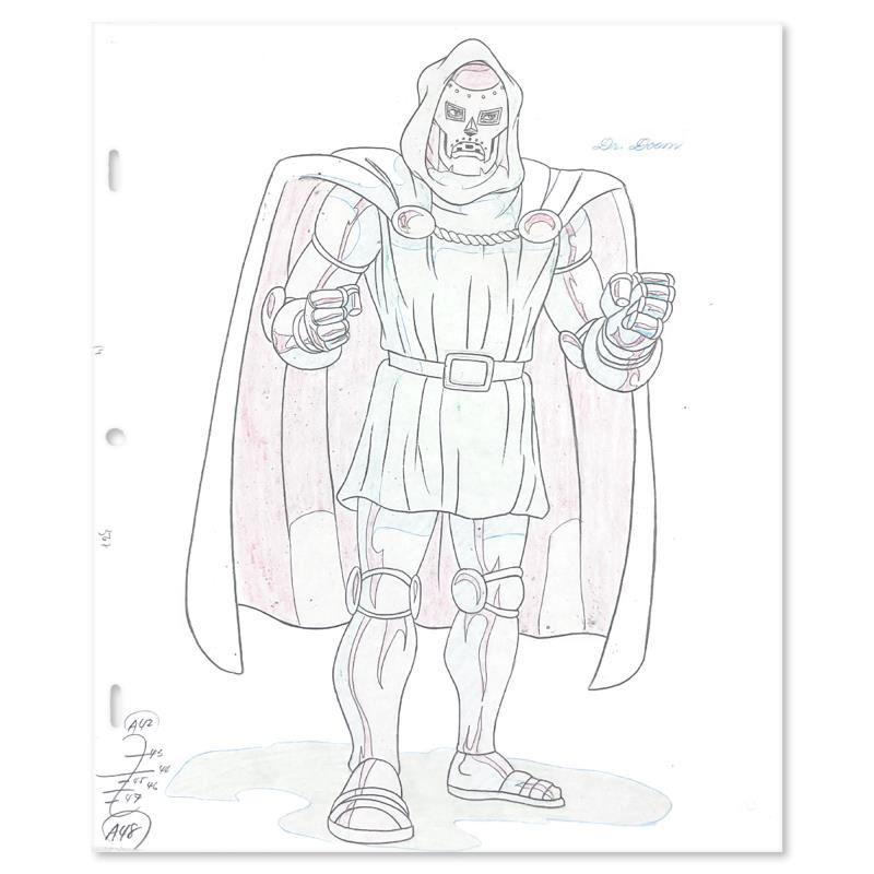 Dr Doom By Marvel Comics Original. "Dr Doom" is an original production drawing on animation paper by Marvel Comics. Includes Letter of Authenticity. Measures approx. 9.5" x 14" (image).