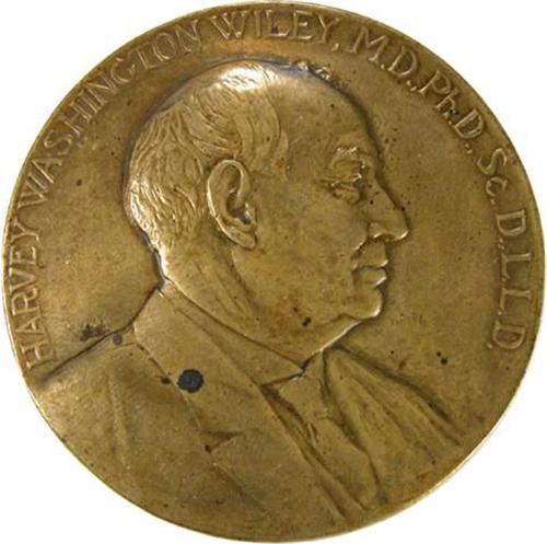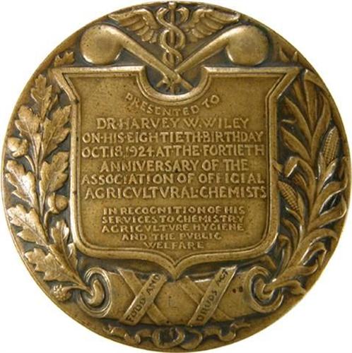 Dr. Harvey Washington Wiley 80th Birthday Medal 1924, presented by the Association of Official Agricultural Chemists, 51mm bronze