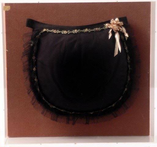 There have been many versions of Robert Louis Stevenson's "Dr. Jekyll and Mr. Hyde", but perhaps none better than the 1941 version starring Spencer Tracy, as the ultimate "bi-polar" monster, with Ingrid Bergman as the ill-fated Ivy, and Lana Turner as Beatrix, the love of the good doctor. This is Lana Turner's Bustle, worn with her elaborate black dress in the famous extended dance sequence with the charming Dr. Jekyll. It was obtained from the original MGM auction in the early 1970's, and comes with a Letter of Provenience. The Bustle is displayed in a custom made Plexiglass case. (Bustle is approx 14"x13", display case is 18"x18").
