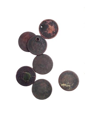 Screen used, bronze 1 cent aged coins, some with holes. Dr. Schultz (Christophe Waltz) drops the coins after he pays the dollar bills to take Django (Jamie Foxx). (1x1)