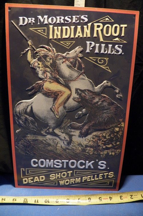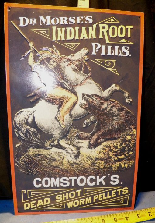 Dr. Morse's Indian Root Pills (Dead Shot Worm Pellets) sign approx size 16" x 10"