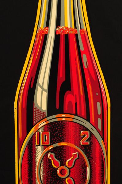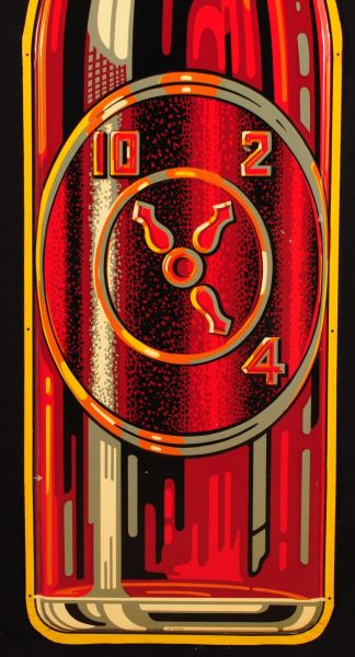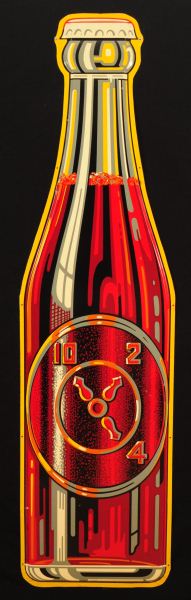 Dr Pepper 10-2-4 Tin Bottle Sign Near Mint NOS Measures 17.5" x 65" H. Bright graphics. Some minor loss from storage. Vibrant colors.