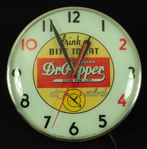 Red Brick logo. D.P.S. Telechron Co., Ashland, Mass., U.S.A. 15" diameter.