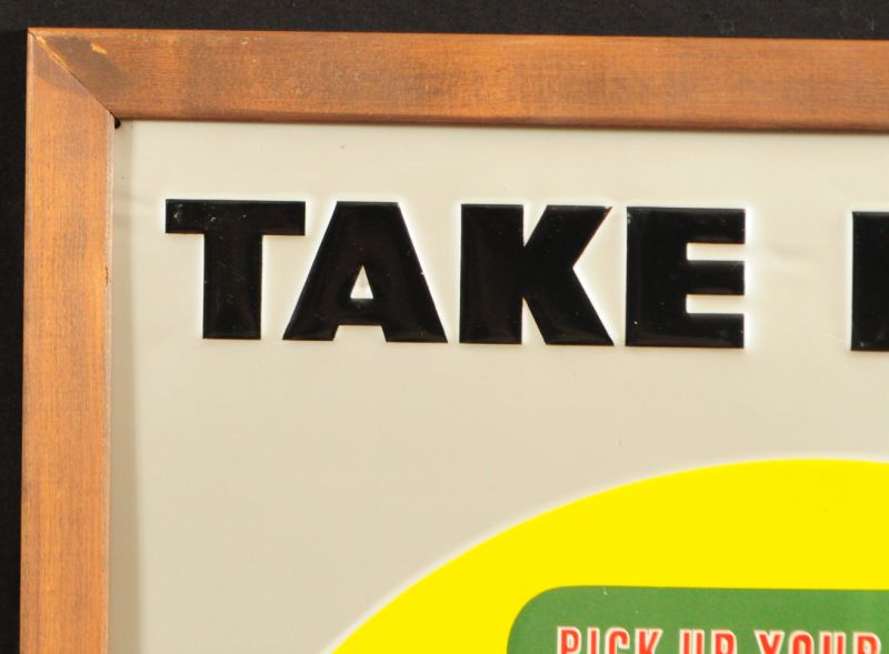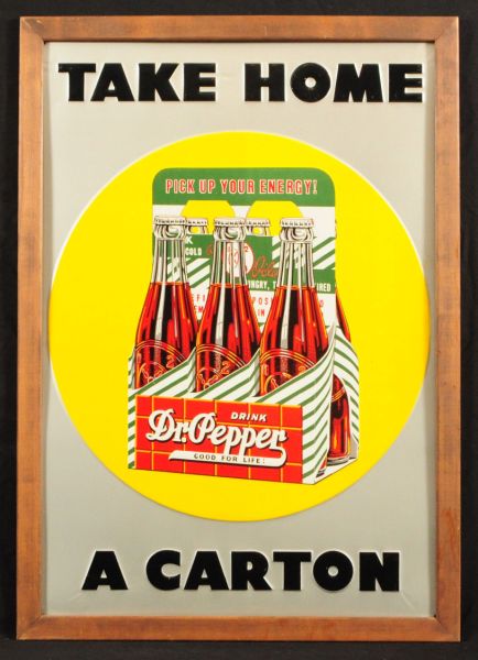 Vintage Dr. Pepper "Take Home a Carton". Excellent condition, NOS. Frame was added at a later date, can easily be removed.. Measures 20" x 28"