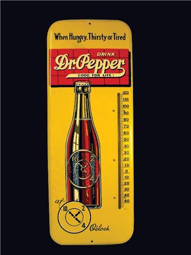 Dr. Pepper Tin Thermometer. Near mint condition. 9 3/4 X 26 inches.