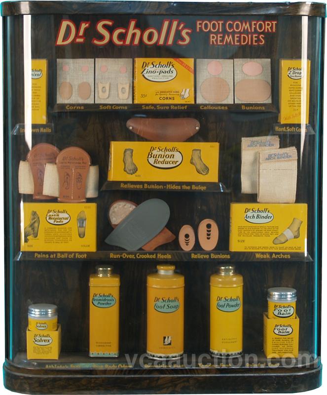 Dr. Scholl's Tin & Plastic Store Display, complete w/ product in great condition - 18" x 11" x 21" tall