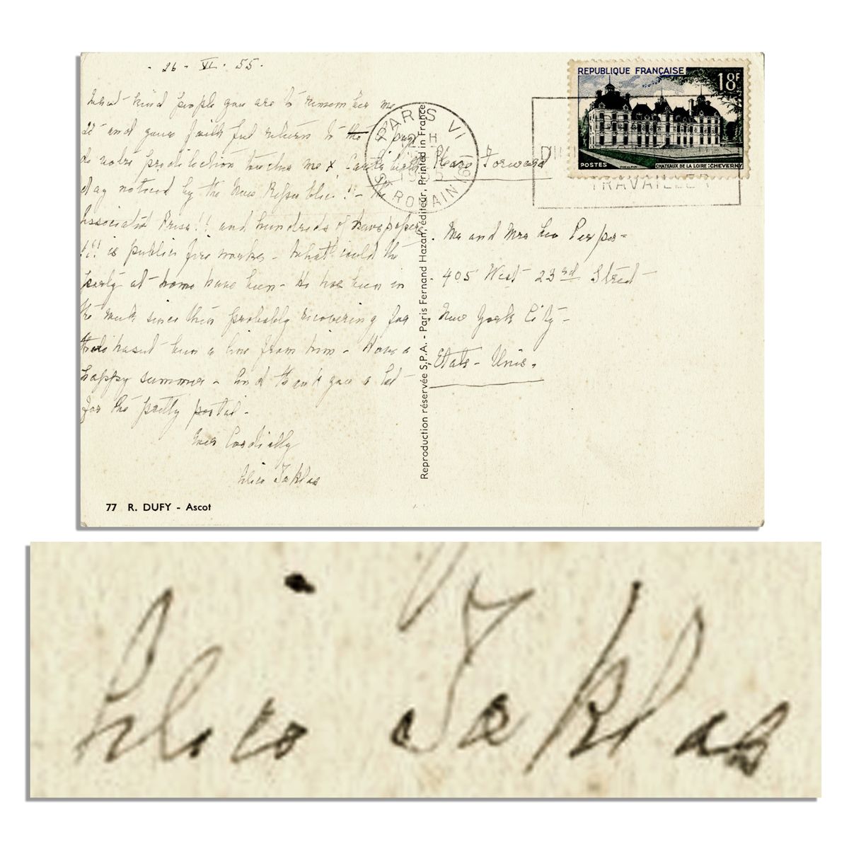 Theodor Geisel (Dr. Seuss) autograph note signed ''Ted'', on ''Dr. Seuss / The Tower / La Jolla, California'' letterhead. Geisel drafts two letters in this note, for his assistant to rewrite and mail at a later time. In the second drafted letter, Geisel forwards a story to his longtime agent Phyllis Jackson: ''...Here's another one that...sounds better than most. Hate to turn this guy down...Love / Ted''. Letter measures 7.25'' x 10.5'' on one page, with ''Dr. Seuss'' written in his hand on verso and then crossed out. Near fine condition.