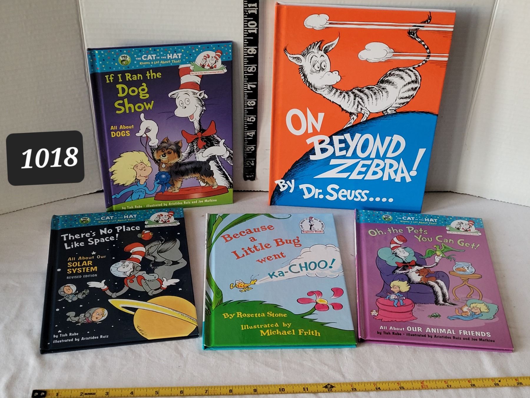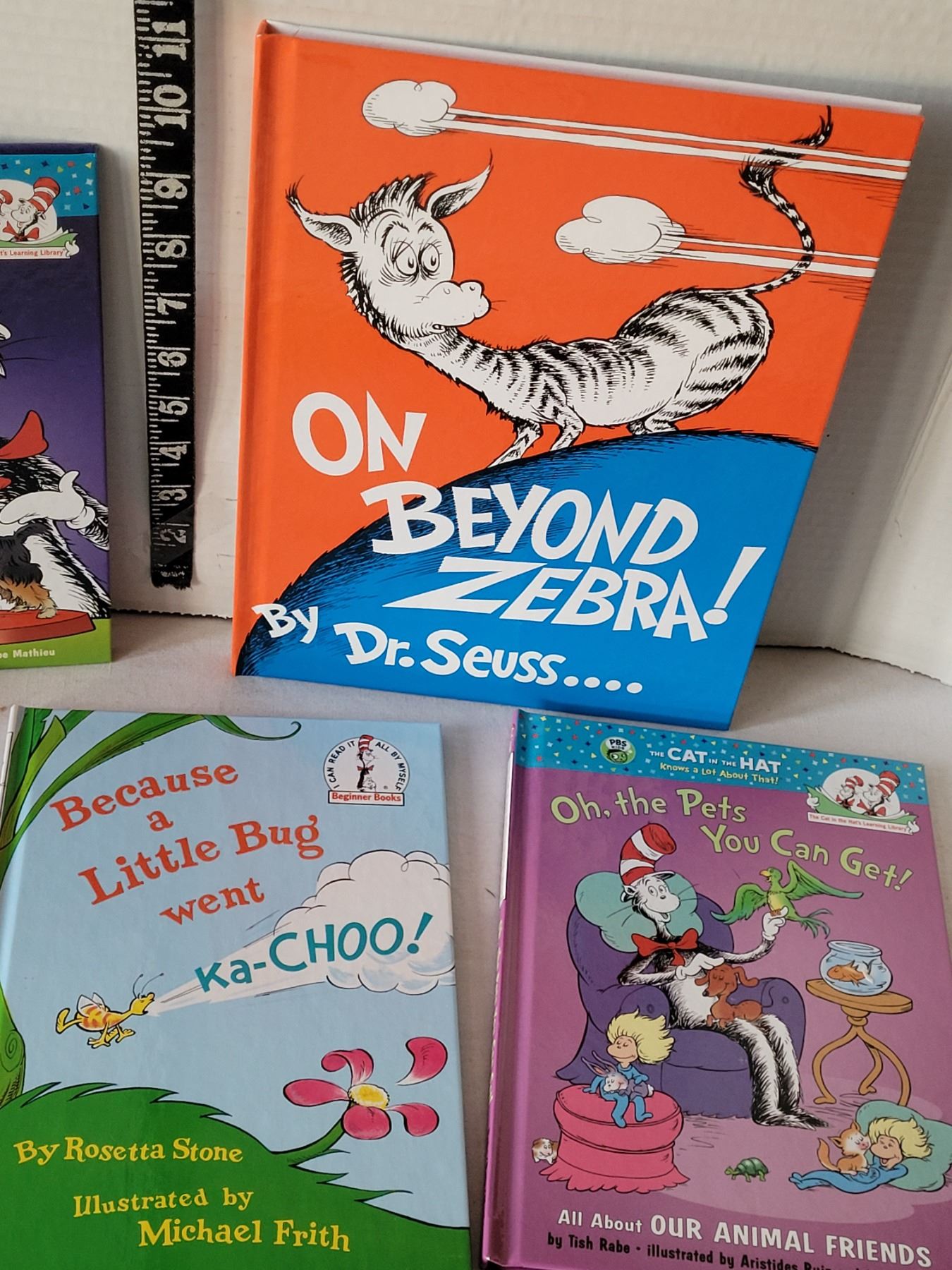 Dr. Seuss Banned book “On Beyond Zebra”. Cat in the Hat story books.