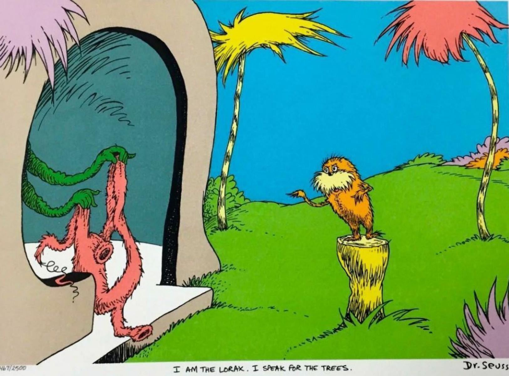 Artist: Dr. Seuss. Medium: Lithograph on B.F.K. Rives Paper. Title: I AM THE LORAX, I SPEAK FOR THE TREES. Size (Unframed): 12" x 16". Limited Edition: Edition of 2500. Certificate of Authenticity: Is Included.