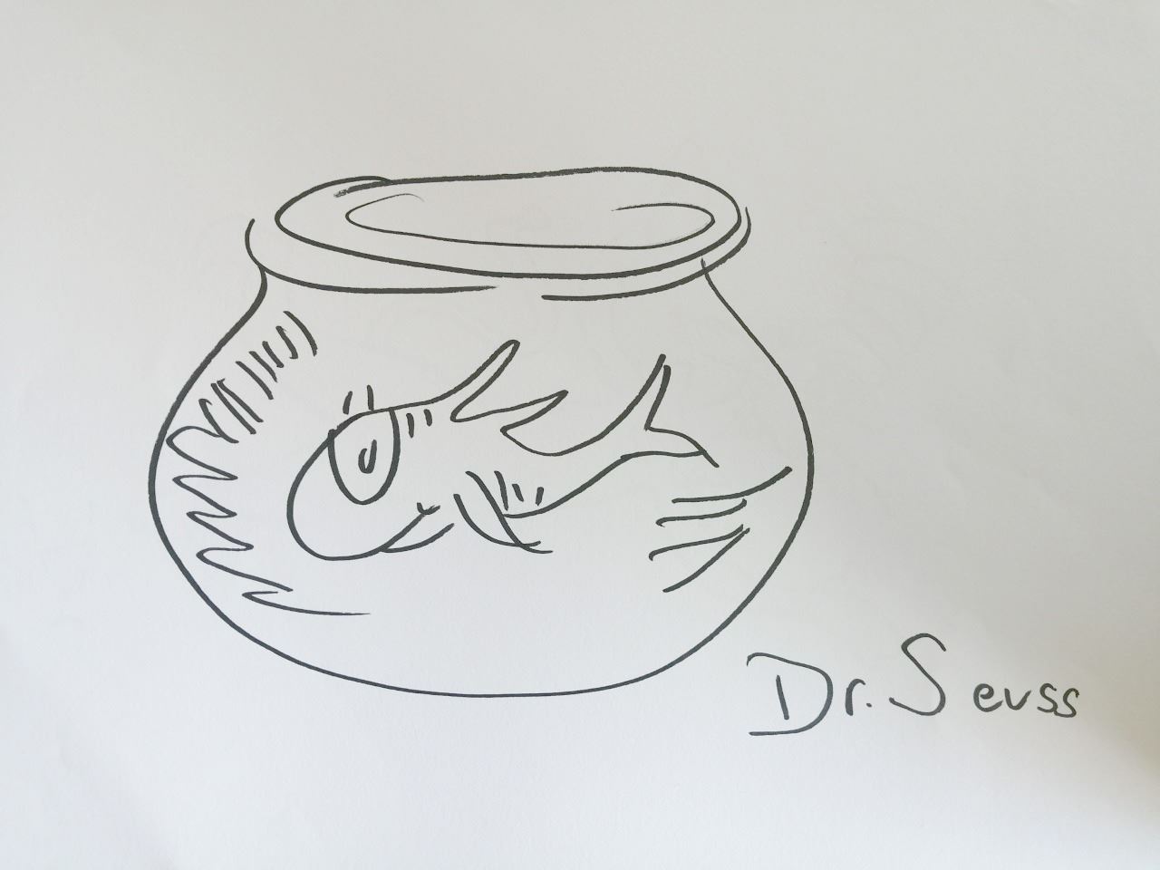 A drawing of the fish from Theodor Geisel, creator of Cat in the Hat books.