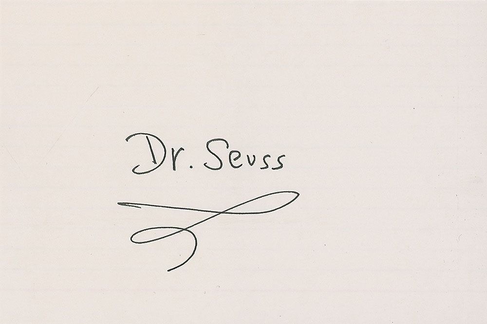 Felt tip signature, “Dr. Seuss,” on an off-white 6 x 4 card. In very fine condition.