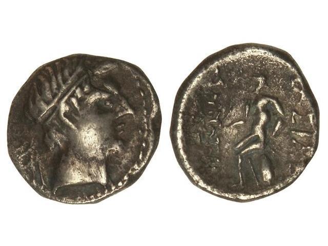 Dracma. - 145-140 a.C. - DEMETRIO II. - REINO SELÉUCIDA. - Anv.: Cabeza diademada a derecha. Rev.: Apolo sentado sobre ómfalos a izquierda, delante y detrás leyenda. 3,89 grs. AR. Se-7057 var. MBC. - -