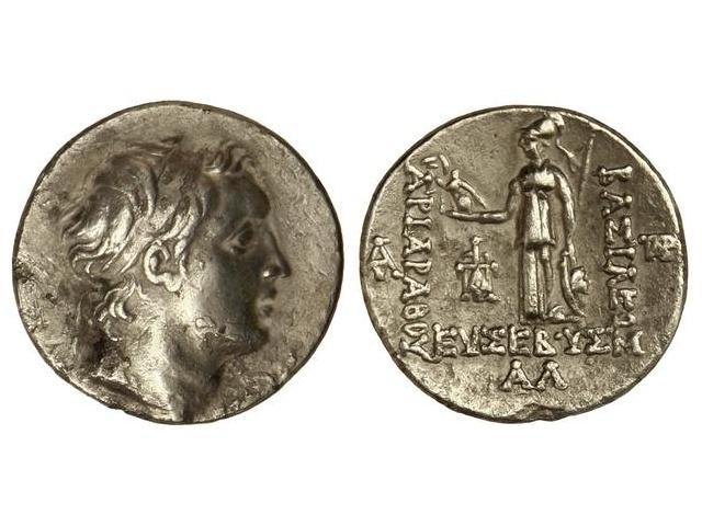 Dracma. - 163-130 a.C. - ARIARATHES V. - CAPADOCIA. - Anv.: Cabeza diademada a derecha. Rev.: Atenea en pie a izquierda sosteniendo a Nike, alrededor leyenda. 4,10 grs. AR. (Leves oxidaciones en anverso). Se-7286 var. MBC+. - -