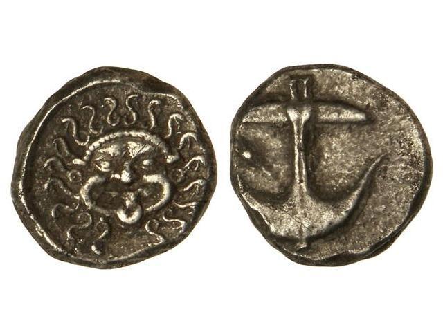 Dracma. - 450-400 a.C. - APOLONIA PONTICA. - Anv.: Medusa. Rev.: Ancla. 3,40 grs. AR. (Pequeñas oxidaciones en anverso). Se-1655 sim. MBC+. - -