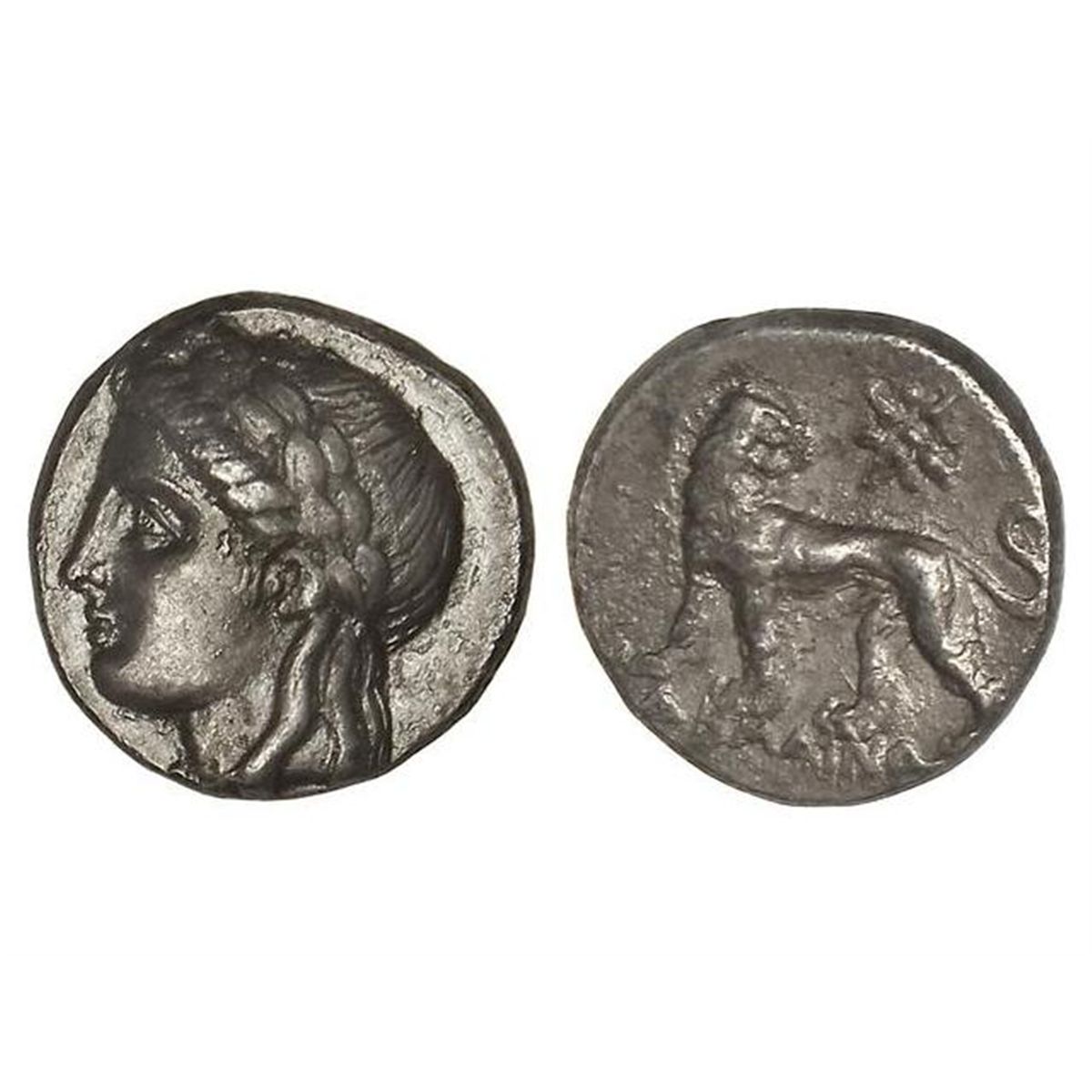 Dracma. - 480-450 a.C. - MILETOS. - Anv.: Busto de Apolo a izquierda. Rev.: León a izquierda, encima estrella. 3,60 grs. AR. (Algunas oxidaciones en reverso). Se-4502. EBC/MBC+. - -