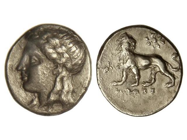 Dracma. 480-450 a.C. MILETOS. Anv.: Busto de Apolo laureado a izquierda. Rev.: León a izquierda, encima estrella. 3,50 grs. AR. Se-4502. EBC.